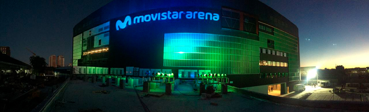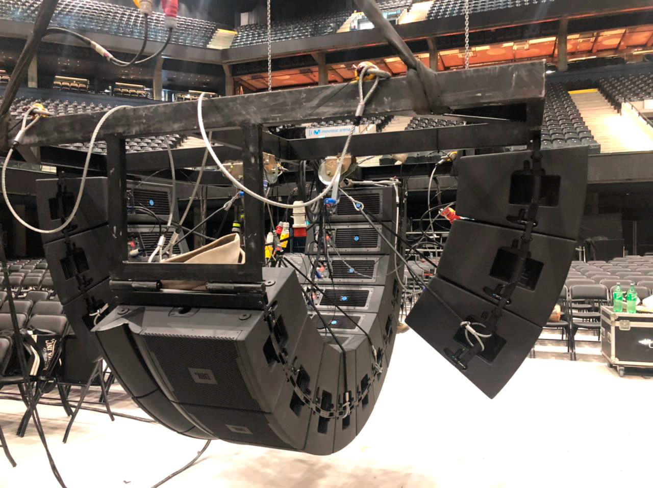Movistar Arena procesamiento Biamp Vocia y Tesira Server, amplificación Crown, Gabinetes JBL.