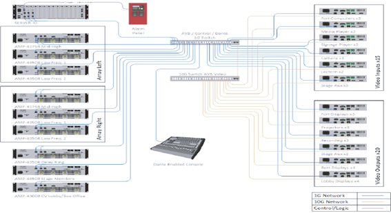 - Los servidores de mensajes pregrabados, servidores de emergencia y expansores para distribución de audio fueron Biamp Vocia y Biamp Tesira