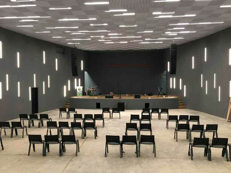sonora, sencillez de uso y facilidad de montaje. El principal requisito de este auditorio fue la cobertura pareja sobre toda la audiencia, para ello se instalaron 8 DVA M2P, y 2 DVA MS12 por lado.